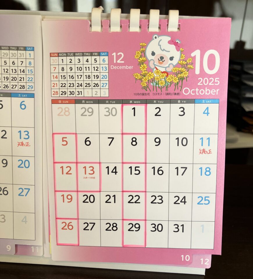9月1日・5日・8日・12日・13日・15日・19日・22日・26日・29日